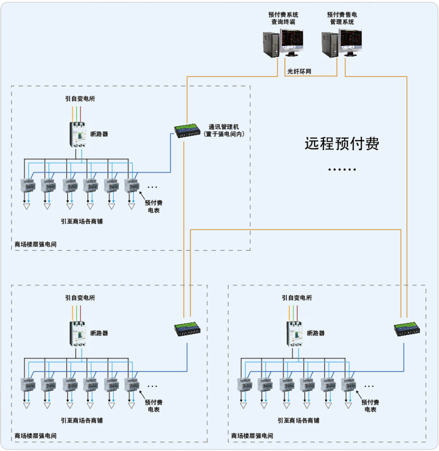 漢峪金融工程A3地塊包括1#、2#、3#、4#、5#、6#、7#共計7個配電室,分別為7座辦公寫字大樓供電。其中安科瑞中標4#、5#、6#、7#共4個配電室,分別為每個配電室提供相應電氣火災監測后臺、電氣火災探測器以及漏電互感器,組成4套剩余電流監測系統,系統組網共分為站控管理層、網絡通訊層、現場設備層三層。