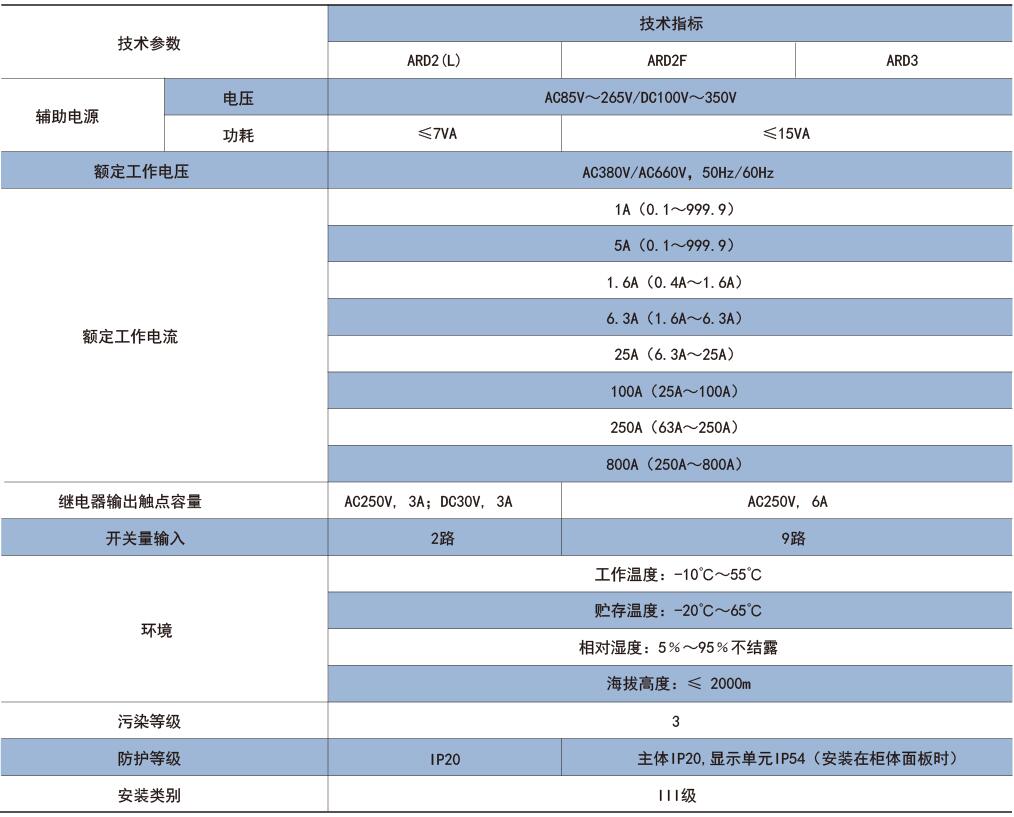 • ARD2(L)、ARD2F、ARD3主要技術指標