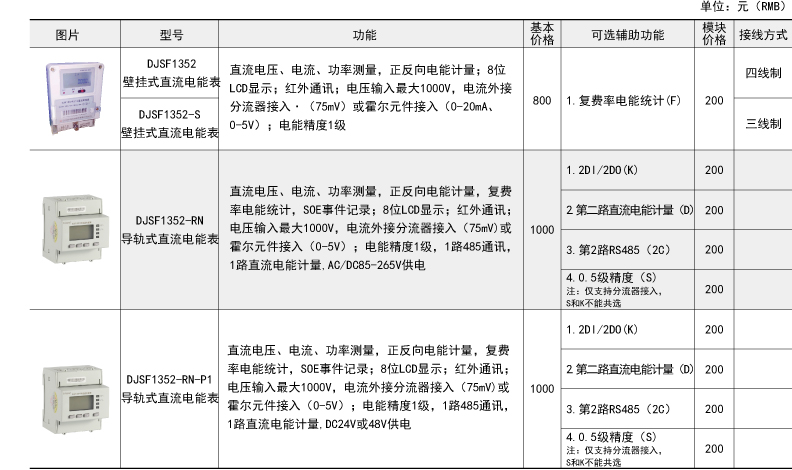 DJSF1352-RN型電子式直流電能表采用液晶顯示,具有RS485功能可與微機進行數(shù)據(jù)交換。產(chǎn)品由測量單元、數(shù)據(jù)處理單元、通訊單元、顯示單元等組成,具有電能測量、數(shù)據(jù)處理、實時監(jiān)測等功能。適合充電樁...