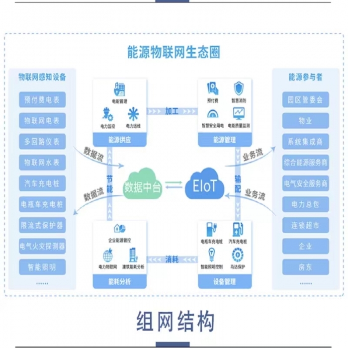 智慧電力物聯網平臺在能源側涵蓋了供能側管理(如水電、火電、核電、風電和太陽能)、儲能側管理(如相變儲熱、冰蓄冷、水儲冷、各類新能源電池等),以及用能測管理(如工業用電、商業用電、新能源電動汽車等),實現上述三類主體與能源調度中心的信息傳遞,實現能效管理、互聯網支付、數據監控等功能,實現互聯網與能源的生產、傳輸、存儲、消費以及能源市場深度融合。image.png圖片11.png