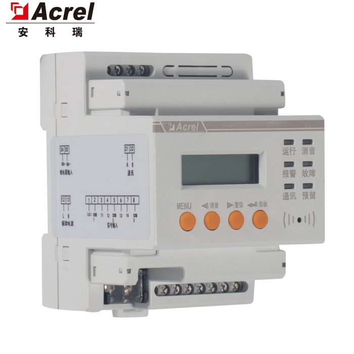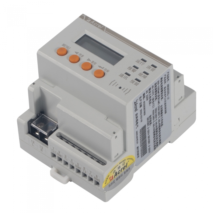 ARCM300L-J4:監(jiān)測四路剩余電流和一路溫度,四路繼電器輸出,聲光報警,485 通訊,事件記錄, LCD 顯示,1 路 RS485/MODBUS 通訊,導軌式安裝;