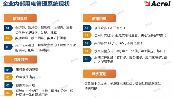 安科瑞長期專注于企業(yè)用戶,長期服務于企業(yè)用戶,有著豐富的企業(yè)內部電能管理系統(tǒng)的改造經驗,可以為客戶提供軟硬件整體解決方案,一體化智慧管理平臺,助力企業(yè)實現雙碳目標。