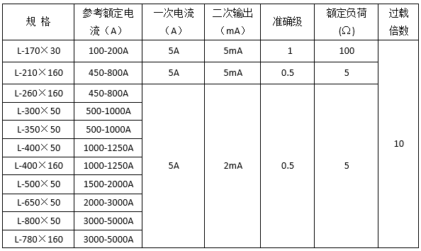 技術(shù)要求:輸入電流10A;二次輸出信號5mA;準(zhǔn)確級0.5級;額定負(fù)荷:0.2VA;過載倍數(shù)8。